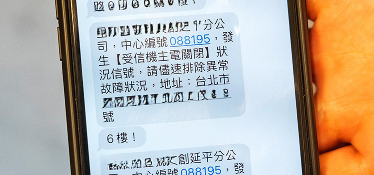 當消防系統發生異常時,偵測告警系統會以簡訊通知相關的防火管理人。